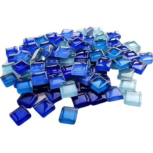 MosaicTiles for Crafts Blue Assorted Color 320 Pieces Glass Glitter Mosaic Supplies Pieces Bulk Square Shape 0.4X0.4 Inch by Mosaic Joy (Blue, 320pcs)